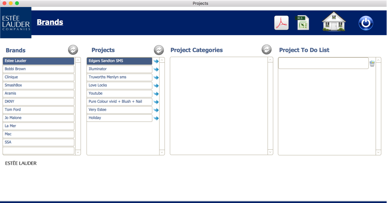 This project management system was developed for the Estee Lauder companies as a customised project tool for their online and digital project manager. The system allows the user to manage various projects and brands simultaneously and is customised to suite any project managers needs.