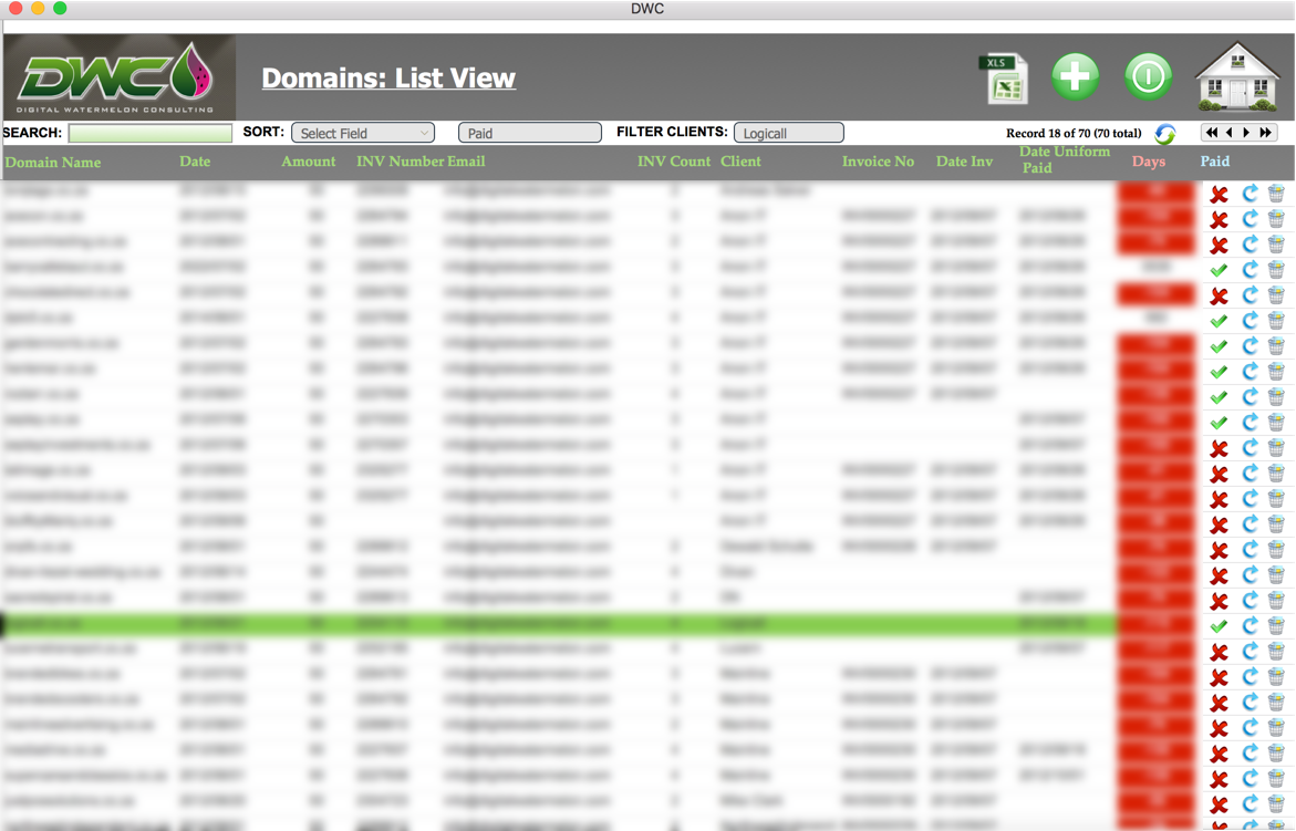 This database was built to manage customers websites. The database will notify you before each website is about to expire and when they are up for renewal.
